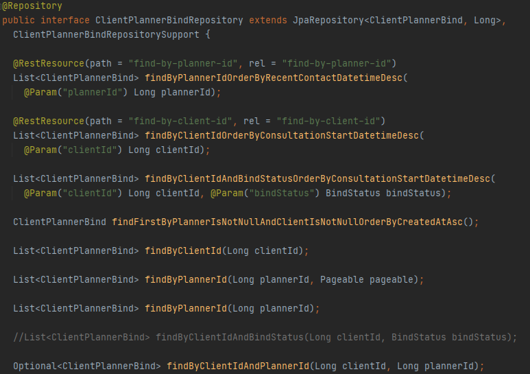 findByClientId(Long clientId); -> select c from ClientPlannerBind c where c.clientId = ?1