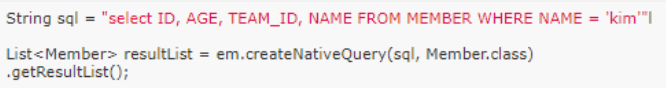 - 네이티브 SQL의 단점 - 특정 데이터베이스에 의존하는 SQL 작성