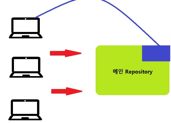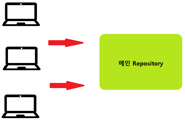 3명의 개발자가 있고 메인 Repository가 있다고 할 때, 개발자들은 서로 다른 기능을 구현한다고 할때